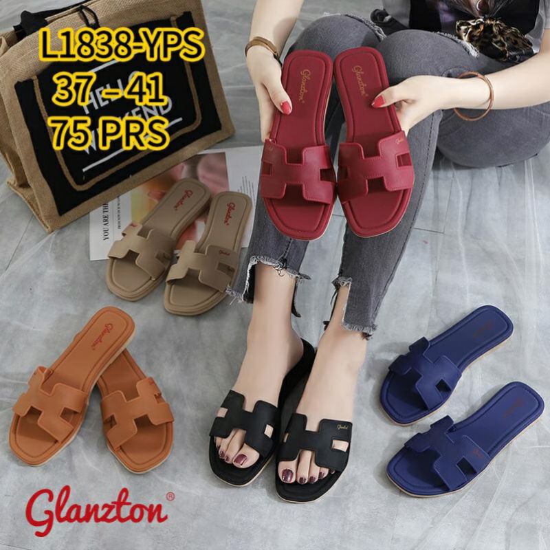 Sandal Glanzton 1838 Wanita Karet Jelly Import Sendal L1838 Glanston Glaston Flat Cewek Perempuan Selop Slop Murah Kekinian Kokop Slip1838-QPS L1838JPS L1838VPS L1838YPS Sun-FIRLY Impor Alice Import Cantik Casual Kasual Polos Model H Original 37-41