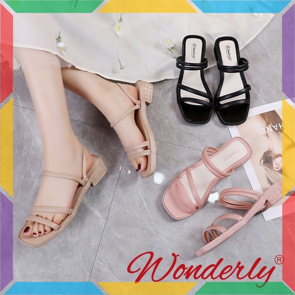713-1 Sandal Sepatu Wedges Wanita Ban 2 Wonderly Sendal Selop Cewek Jelly Karet Tawana