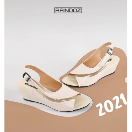 Raindoz Hak 4 cm - Sandal Tali Wanita Wedges Semi Formal Pesta Kondangan Original Terbaru - Cream