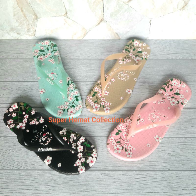 Boloni Gofu Sandal Jepit Full Karet Wanita Cewek Motif Bunga Sakura Bali Murah Kekinian (Goofu)