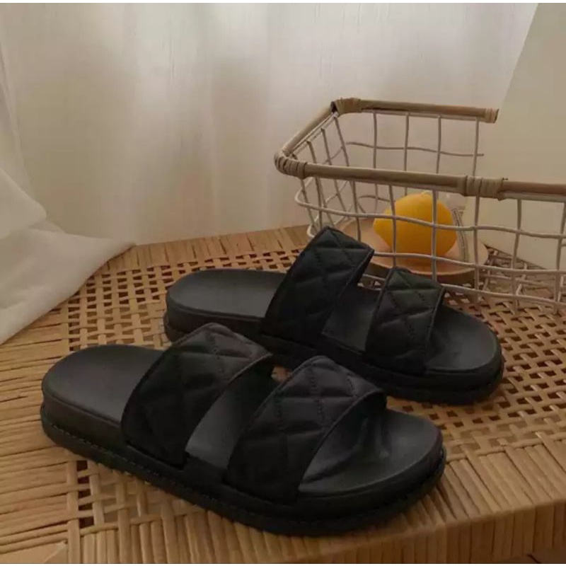 Harga PROMO 2.2 COD SALE SANDAL WANITA WEDGES SLOP BAN 3 KICKERS WARNA HITAM TERBARU MURAH NYAMAN DI PAKAI / SAKIPO