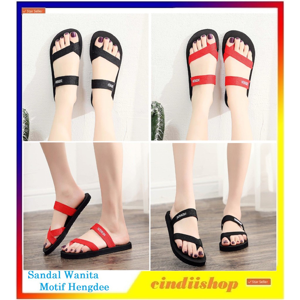 Sandal Tali Wanita Hengdee Sendal Cewek Motif Hengde Flip Flop Jepit Silang Dewasa